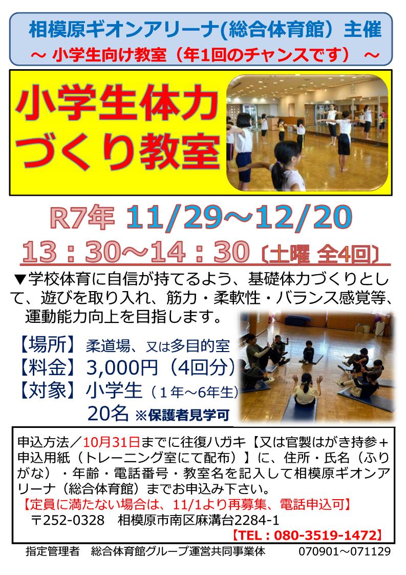 【年に1度だけ!】小学生体力づくり教室参加者募集