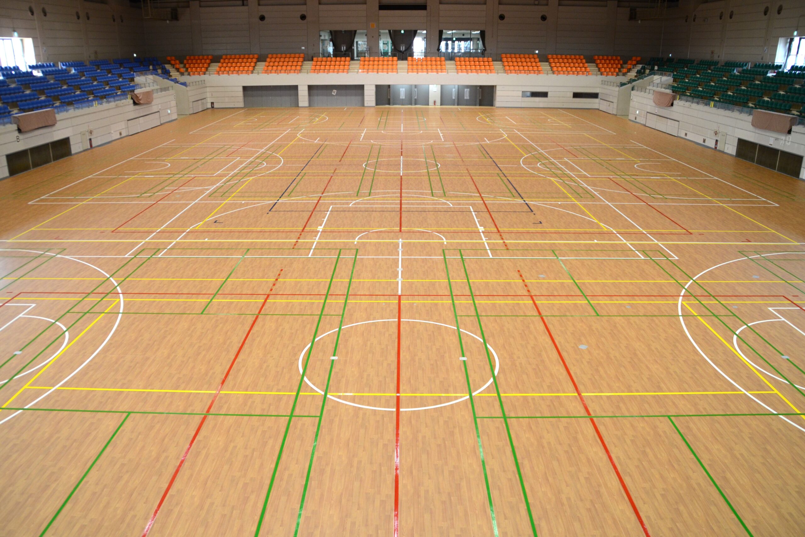 床面改修を行っておりました大体育室の工事が完了しました。 令和8年3月1日(日)から利用を再開いたします。 改修後はシート床材を用いた床面となっており、安全性の向上だけでなく、衝撃吸収性や静穏性が向上しておりこれまで以上に使いやすい体育室へとリニューアルしました。